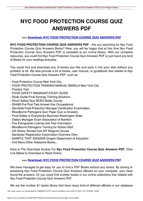 Best Nyc Food Protection Course Quiz Answers Read Online EBook Sites No Sign Up - As we know, Read Online EBook is a great way to spend leisure time. Almost every month, there are new Audio Book being released and there are numerous brand new Audio Book as well.